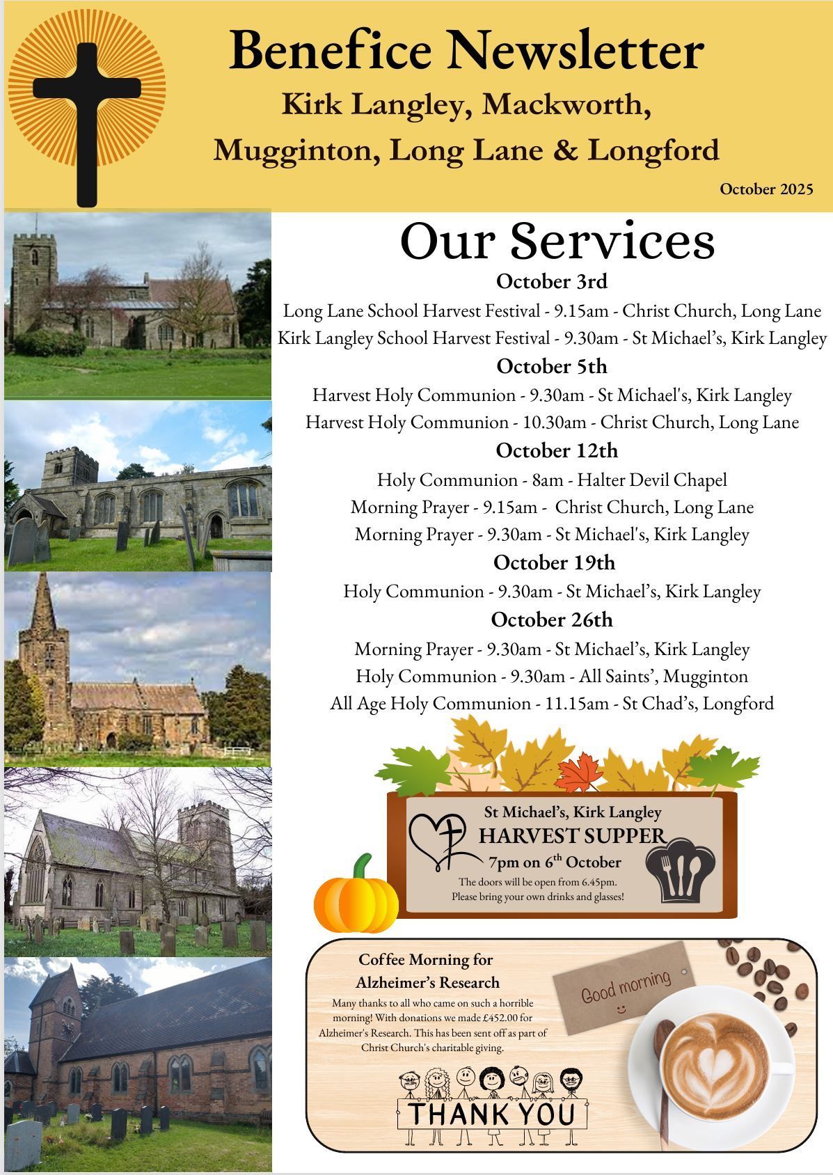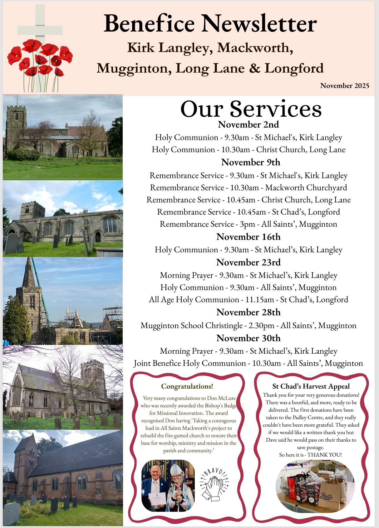 This document is a consultation for the proposed reorganisation (draft pastoral scheme) of the Longford8 benefice (which was the group of eight churches that Longford was previously part of). The proposals include, among other things, the creation of a benefice of Longford and Long Lane and the union of this with Kirk Langley, Mackworth and Mugginton with Kedleston benefices. The consultation is open until 20th February 2023 and any representations (for or against all or any part of the draft scheme) should be sent to the address in the consultation document.